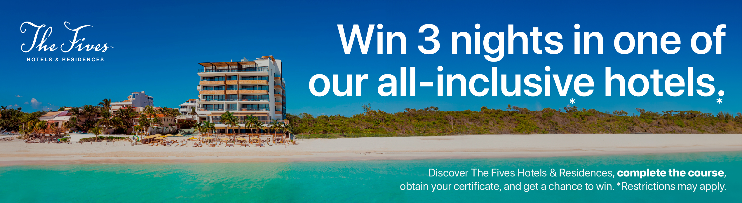 All agents that complete the course for the first time between November 10, 2025 to December 20, 2025 can participate in a drawing to receive a complimentary 3-night stay at The Fives Hotel & Residences in a One Bedroom Suite.*